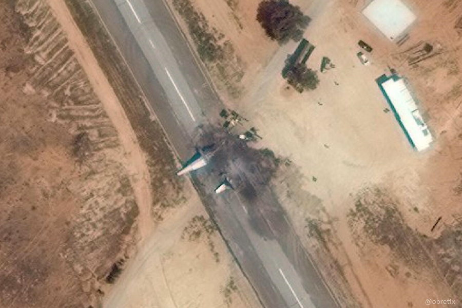 На представленном спутниковом снимке можно увидеть, что в результате попадания в самолёт ракеты от последнего практически ничего не осталось, при этом, ряд источников утверждает, что в действительности, самолёт не был сбит во время захода на посадку, а был уничтожен возможным ударом сразу же после приземления в аэропорту, что, к слову, вызывает ряд вопросов, поскольку про-турецкие террористы взяли на себя ответственность в уничтожении этого самолёта.