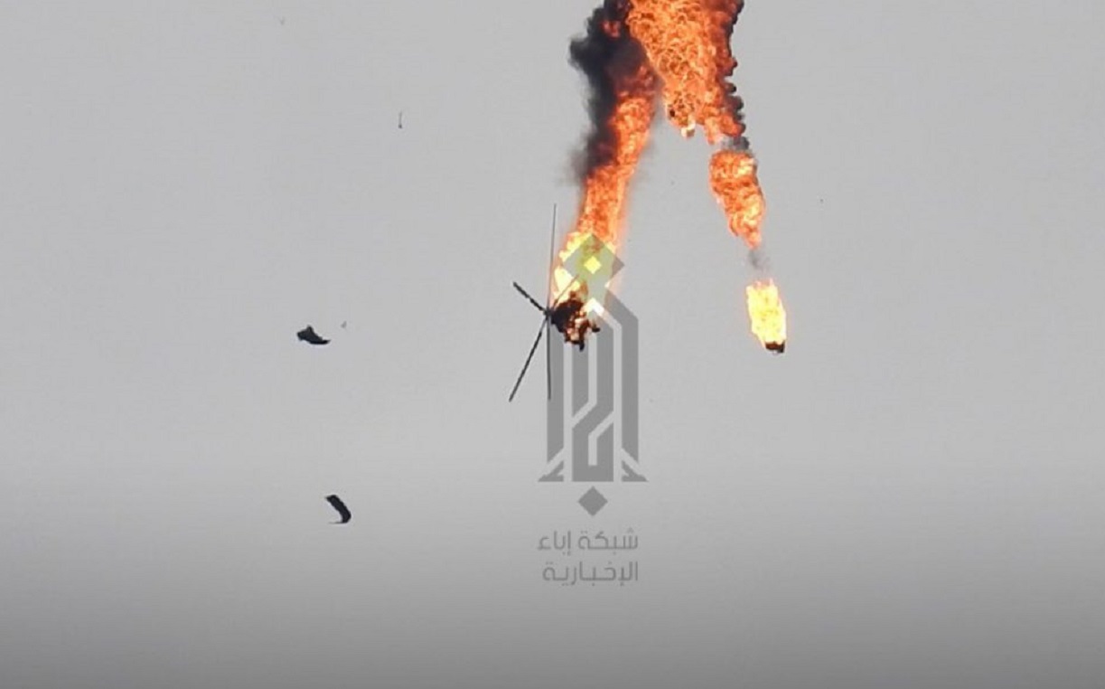 BREAKING: Helicopter reportedly shot down near Nayrab in Idlib, Syria. pic.twitter.com/ihskTXenWW