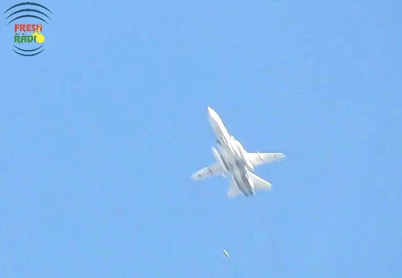 На представленных фотографиях запечатлён момент появления российского бомбардировщика Су-24 над позициями боевиков, и последующее уничтожение большого здания, в котором, как предполагается, находились до 12 террористов. Представители боевиков не комментируют собственные потери, однако, создают очередные провокации, демонстрируя фотографии мирных жителей, которые якобы и находились в уничтоженном здании, однако .как оказалось, фотографии вообще были сделаны в другом районе Сирии.